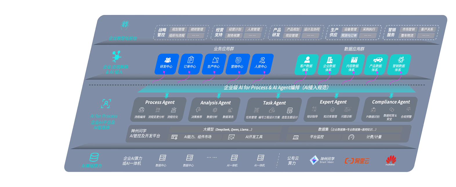 一竞技问学智车解决方案是一套基于AI技术的汽车行业智能化系统,,覆盖从底层算力到顶层AI应用的全栈方案。。。。方案由算力层、、模型层和应用层组成:算力层,,方案支持多种一体机配置,,具备云端灵活部署、、、多云适配以及动态优化计算资源的能力;模型层,,一竞技问学平台版提供了企业级AI应用一站式构建与管理平台,,支持基于后训练强化技术的汽车企业专属模型的训练、、、、评测和运营;应用层,,,一竞技问学DeepSeek版提供包括超级员工、、智能招采、、智能营销、、、、智能客服、、、、AI for BI等一系列解决方案,,可助力汽车行业实现数字化转型,,,,让管理更智能、、、响应更敏捷。。。。